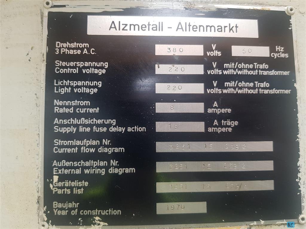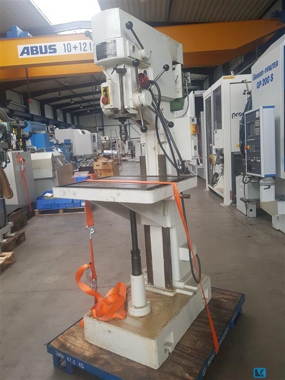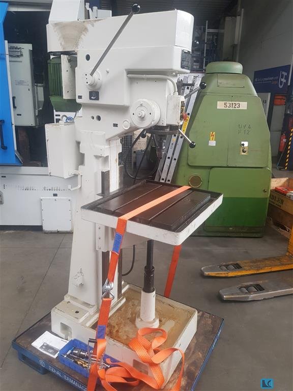 Alzmetall AB4SJ Suporte de ferramentas MK4 alimentação automática com 3 velocidades de alimentação 2 estágios de filmagem e controlo de velocidade infinitamente variável cano esquerdo direito, dispositivo de corte de fios Dispositivo de agente de arrefecimento no pé Mesa redonda com buracos sem contador rev Capa de máquina moderna feita de plástico com rachaduras e loechers Velocidade: 80-710 rpm Diâmetro da mesa: 450 mm Distância máxima do eixo ao pé: 1200 mm Extensão ao eixo central: 170 mm Enxada de máquina aprox. 200 cm Bt323s8 PREÇO ESPECIAL devido a uma condição visualmente deficiente de acordo com as fotos, condição tecnicamente utilizável, a broca não está bloqueada no suporte da ferramenta de centrifugadora do eixo no movimento rotativo (ver fotos). Se a broca não estiver firmemente no eixo da broca, roda. Preço especial