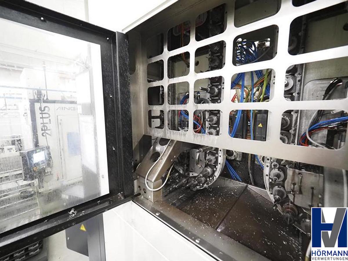 Siemens Sinumerik 840D SL control system 4 axes and 4 spindles Spindle spacing 500 mm Max. spindle speed 15,000 rpm Including - 4x 40-station tool changers from CFT | HSK-63 tool holder - Cooling unit from Deltatherm | Type WT-Gruppe | Year of manufacture 2016 | Serial no. 14-32042 - Coolant system from BMF | Output 80 bar - Paper belt filter from BMF Type WT-15 | Year of manufacture 2016 | Serial no. 050280-40.1 - Scraper belt conveyor from bmf | Year of manufacture 2016 | Serial no. 050280-50.1 The workpiece fixtures in the systems are not included in the listing. Term weight 28,000 kg, Machine designation: Double spindle machining center, Machine number: AA100163-11, operating hours: 11.000 h, Travel x/y/z: 550x2,000x550mm, Workpiece counter as of November 4, 2020: 275,776 pieces, Workpiece counter as of 04.11.2020: 275,776 pieces