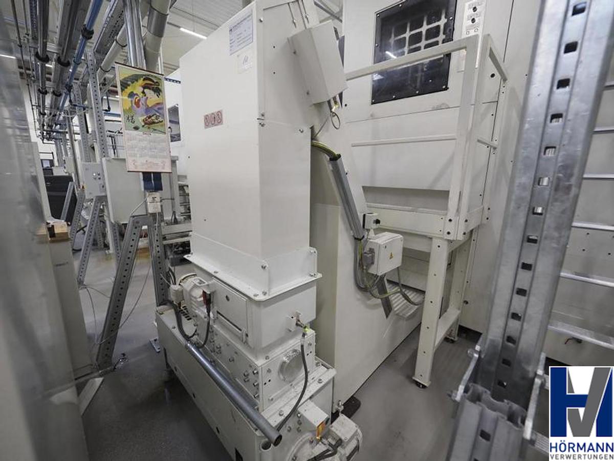 Siemens Sinumerik 840D SL control system 4 axes and 4 spindles Spindle spacing 500 mm Max. spindle speed 15,000 rpm Including - 4x 40-station tool changers from CFT | HSK-63 tool holder - Cooling unit from Deltatherm | Type WT Group | Year of manufacture 2016 | Serial no. 14-32038 - Coolant system from BMF | Output 80 bar - Paper belt filter from BMF Type WT-15 | Year of manufacture 2016 | Serial no. 050280-40.2 - Scraper belt conveyor from BMF | Year of manufacture 2016 | Serial no. 050280-60.1 The workpiece fixtures in the systems are not included in the listing. Term weight 28,000 kg, Machine designation: Double spindle machining center, Machine number: AA100163-12, operating hours: 10,000 hours, Travel x/y/z: 550x2,000x550mm, Workpiece counter as of November 4, 2020: 236,332 pieces, Workpiece counter as of 04.11.2020: 236,332 pieces