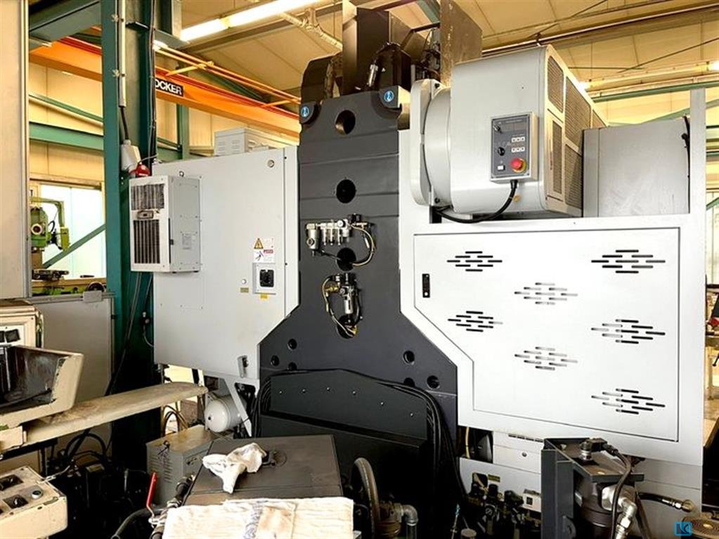 x-travel: 1200 mm y-travel: 600 mm z-travel: 600 mm Control: Heidenhain iTNC 530 spindle speed:: 6000 1/min. spindle taper: 50 SK spindle drive: (S1) 10 kW table surface area: 1300 x 600 mm table load: 1200 kg feed speeds: 1-10000 mm/min rapid travel x/y/z: 20/20/15 m/min distance table - lower edge spindle: 125-725 mm total power requirement: 25 kVA weight of the machine ca.: 7,5 t dimensions of machine: 3600 x 2300 x 3000 mm Equipped with: CNC control Heidenhain iTNC 530 Electr. portable handwheel Spindle oil cooler Tool changer 24-pos., double arm changer - Max. tool diameter 80/150 mm - Max. tool length 250 mm - Max. tool weight 8 kg Preparation for hydraulic machine vice Preparation for 3-D measuring probes Chip conveyor Coolant system, coolant through spindle 20 bar Machine documentation Working hours (date 1st. November 2024): - Control on: 60.818 h - Machine on: 59.598 h ...