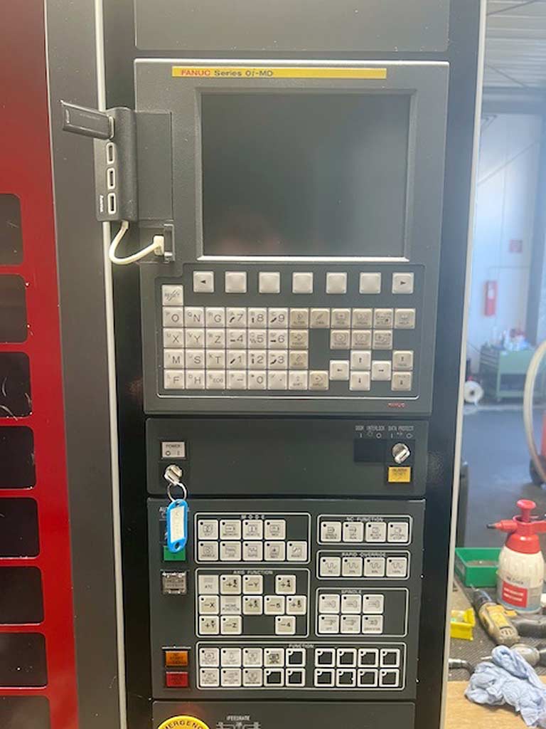 Viagem X/Y/Z: 500mm/350mm/300mm, dimensões da mesa X/Y: 320mm/320mm, carga máxima da mesa: 450kg, velocidade: 13000rpm, potência do eixo: 5.5kW, montagem do eixo: HSK40, posições da ferramenta: 24, diâmetro máximo da ferramenta: 75mm, comprimento máximo da ferramenta: 200mm, peso máximo da ferramenta: 3kg, passagem rápida: 60m/min. Dimensões da máquina X/Y/Z: aprox. 4200mm/1250mm/2450mm, peso: 4400kg, controle: Fanuc Series 21i-MB. Documentação disponível. É possível uma inspeção no local.