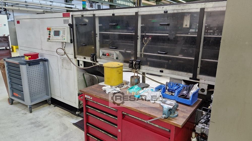 Nota: Temos 6 peças desta máquina em stock! Fabricante: Gildemeister Tipo: GS 36 - 6 A/C Máquina nº: 7.0176 Ano de construção: 1987 Peso: 11t Dados gerais/técnicos: Laço automático Portal-6spindle com dispositivo de medição e alimentação automática Circuito de divisão de eixo: 300mm Número de slides longitudinais: 6 Número de slides cruzados: 2 gr. curso de slide cruzado: 60mm gr. curso de diapositivos longitudinais: 125mm Velocidades do fuso: Infinitamente variável 562 – 3373 rpm Intervalo de tempo principal: Stepless 1.95 - 78 seg. Intervalo de tempo baixo: 0,79 - 2,13 seg. Potência de acionamento: Eixos do motor DC 20kW; Tarifas de alimentação 8kW Área de instalação: aprox. 1720 x 4700mm Observação: A máquina não pode ser convertida para trabalhos de bar. Equipamento: – 1 unidade de engrena ...