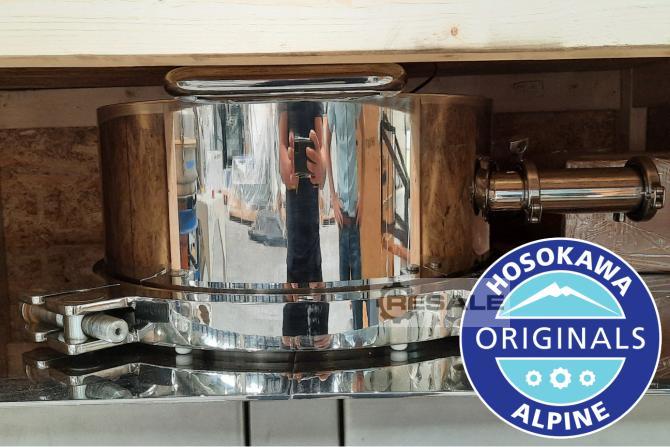 Uma máquina hosokawa alpine originals Remodelado pelo fabricante original Utilização apenas de componentes originais Garantia original do fabricante Fornecimento garantido de peças sobressalentes do fabricante Curto tempo de duração Antes da entrega, a máquina é revista, todas as peças de desgaste são revistas e trocadas se necessário e personalizadas às suas necessidades específicas Possibilidade de fornecer todos os periféricos adicionalmente necessários ou adaptar-se à fábrica de produção existente Moinho de classificação Hosokawa Alpine ACM 30, em aço normal, constituído por um moinho completo com motores Características e vantagens do moinho classificador ACM: • Moer e classificar numa única máquina. • Excelente precisão de distribuição de tamanho de partículas cortadas e íngremes. • Ponto de corte ajustável estridavelmente. ...