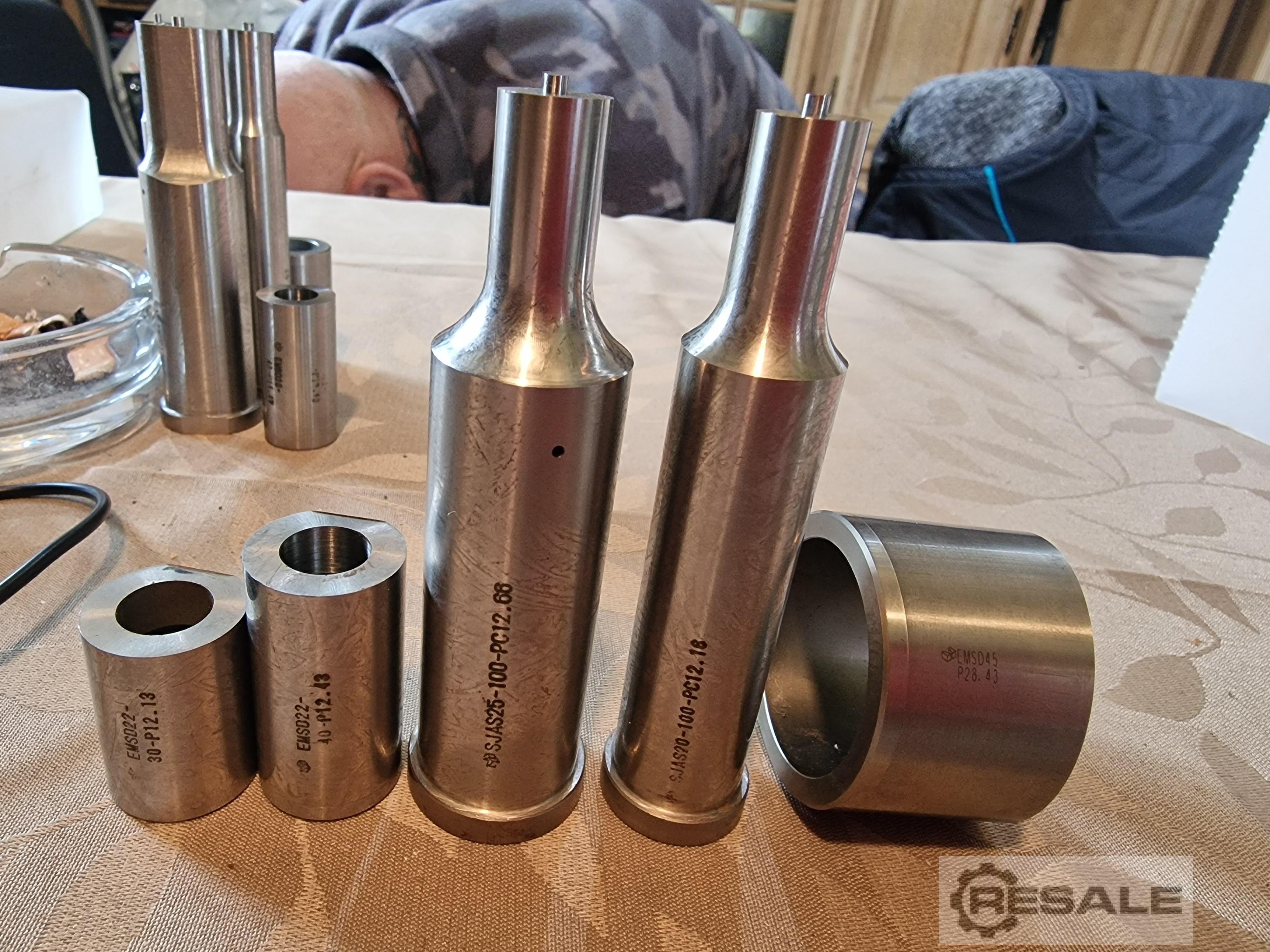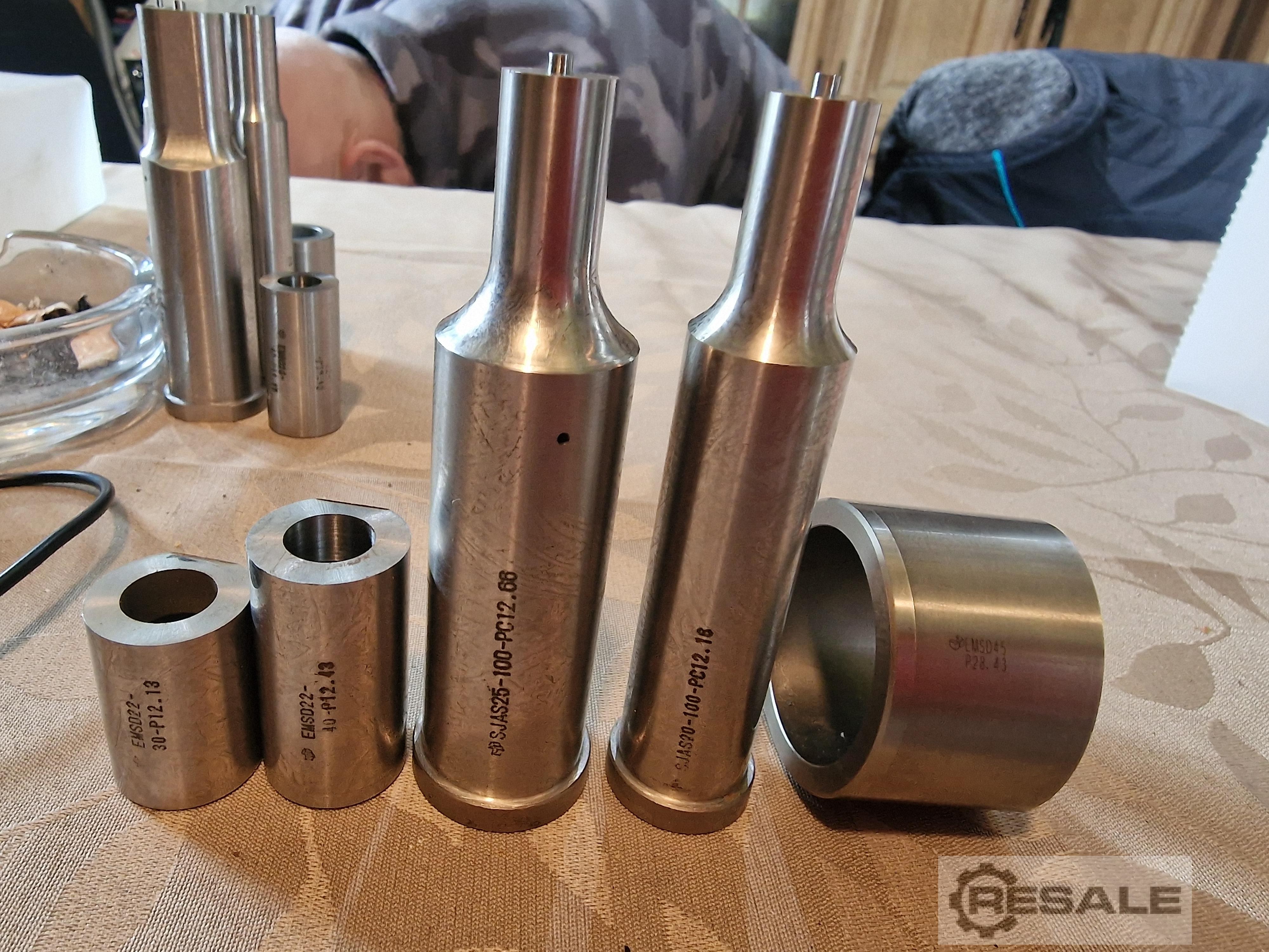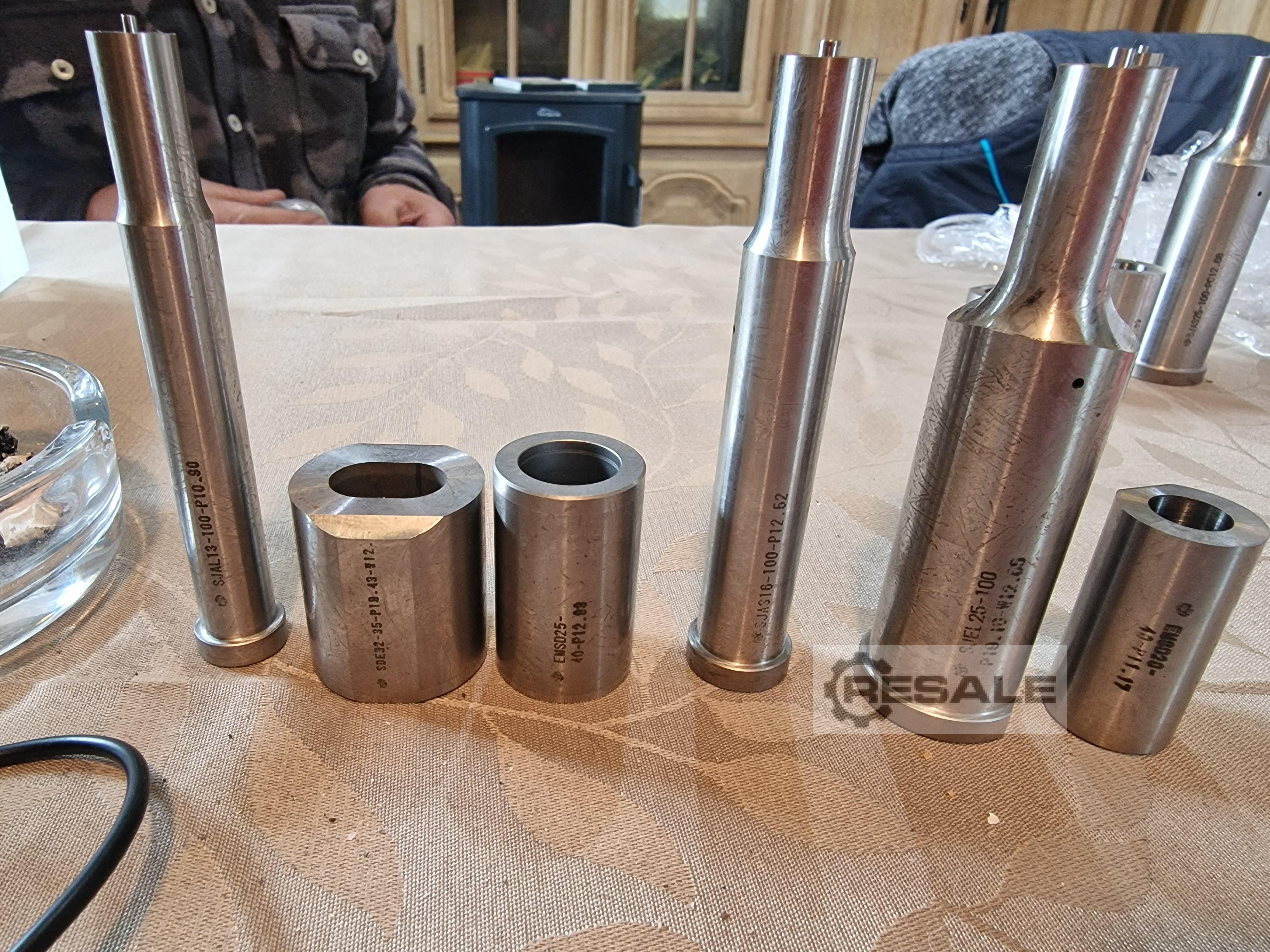 Ferramentas de perfuração / componentes de ferramentas de prensa da MISUMI – ou seja, punções e matrizes / buchas de corte (matrizes de botão) para trabalho em chapa metálica. Nas partes podes ver designações como SJAS..., EMSD... E na nota várias vezes MISUMI. A MISUMI lidera a SJAS