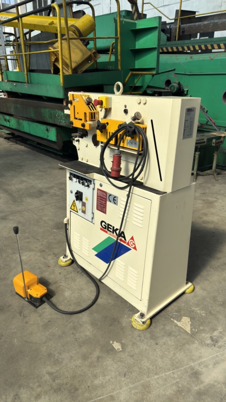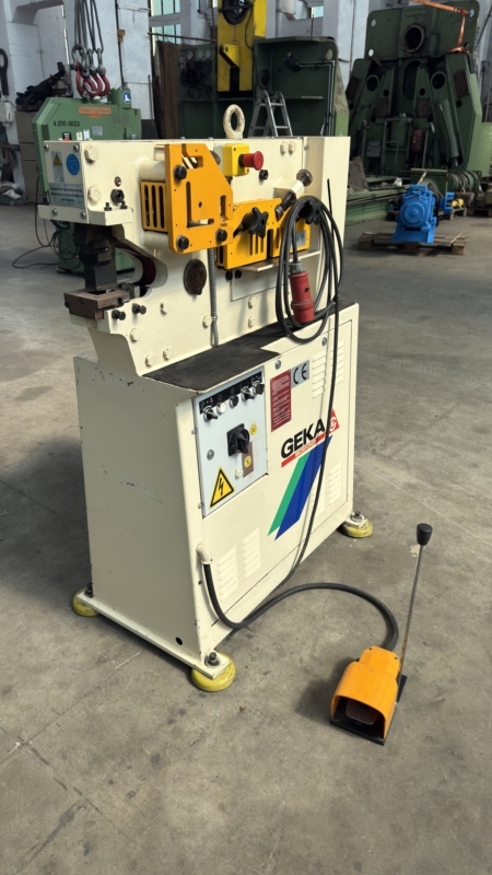 round bar steel: 32 mmsquare edge steel: 30 mmL-beam: 80 x 80 x 8 mm: 80 x 13 mm: 36 tthroat: 170 mmwork stroke: 28 mmwork height max.: 980 mmmaterial thickness: 28 x 13 mmhole diameter in sheet thickness: 25x10 / 30x8 mmtotal power requirement: kWweight of the machine ca.: 0,8 tdimensions of the machine ca.: 1,2 x 0,8 x 1,9 mProfile steel scissors with- 4 workstations- 1 foot trigger- hydr. drive- Support tables- Rectangular notcher- Hole punch including toolsThe data for this ad was created with ModulMWS - the software solution of LogoTech oHG.
