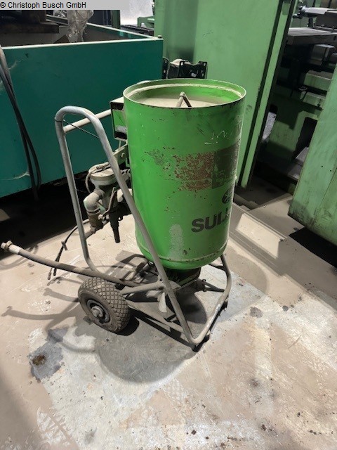 Máquina de jateamento com mesa de indexação com injetores / máquina de jateamento de areia (usada) À venda está uma máquina de jateamento de mesa de indexação de injetores de alto desempenho do fabricante SES GmbH & Co. KG, adequada para limpeza e arredondamento de componentes de maquinação. O sistema impressiona pelo seu design robusto, elevada fiabilidade de processos e opções de aplicação flexíveis com meios de jateamento em aço inoxidável ou coríndum. Fabricante: SES GmbH & Co. KG Tipo: ITS-2300 Ano de Fabricação: 2012 Equipamento técnico Plataforma giratória de ciclo com diâmetro de aproximadamente 1.300 mm, espessura do material de aço de 12 mm Acionamento através de tabela de indexação rotativa 7 satélites de gravação de peças de trabalho Diâmetro por satélite: aprox. 250 mm Capacidade de carga: máximo 20 kg por satélit ...