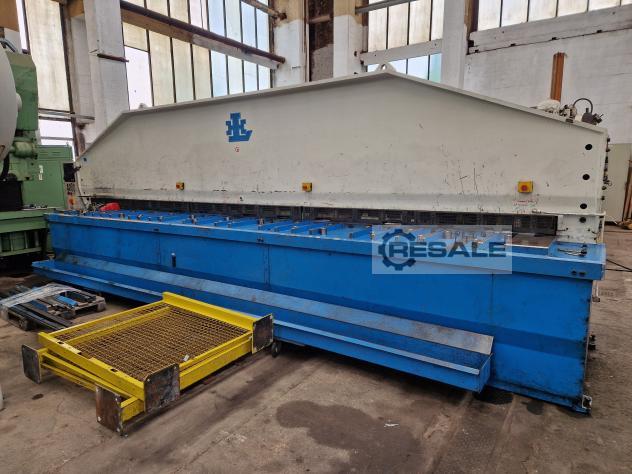 Hidráulica. tesoura guilhotina, usada, pronta para demonstração Tesoura de chapa hidráulica, usada, pronta para operação Tipo / tipo: 252.6000.4 Fabr./ marca: Helmut Lotze Baujahr/ ano: 1995 Lager-Nummer / Número de estoque: 0989 Blechstärke bei größte Blechbreite/ espessura máxima de corte: 4 mm Schneidbreite/ comprimento de corte: 6040 mm Massa: aprox. 22 t Especificação: Hinteranschlag / backstop Rollablage / Bandeja de rolos