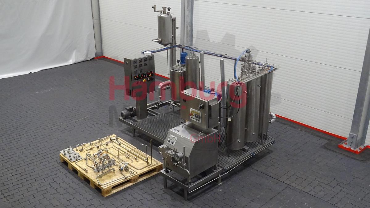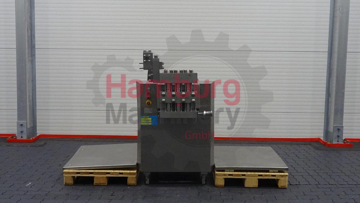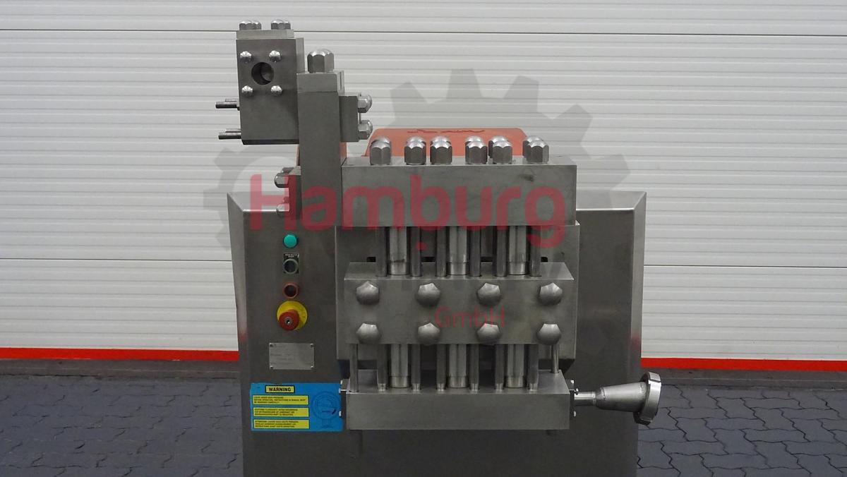 Fabricante: APV Gaulin Tipo: MC 120-2.5 TPS N° de Série: 95 l 34612 Ano de Marca: 1995 Conversão para NanoValve para homogeneização mais eficiente Capacidade: 15.000 - 19.000 l/h Pressão de funcionamento: 250 bar Estado: bom, totalmente funcional