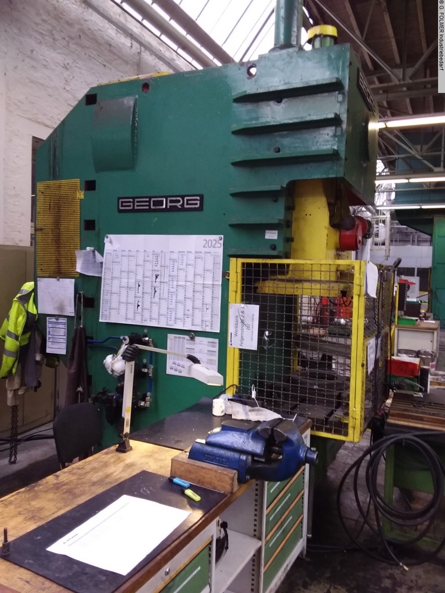 pressure: 125 tno. of strokes: 55 Hub/minstroke: 20 - 160 mmtable-size: 970 x 660 mmmax. ram stroke: 160 mmmin. ram stroke: 20 mmthroat: 340 mmtotal power requirement: 11 kWweight of the machine ca.: tdimensions of the machine ca.: 1,5 x 3,0 x mWith motor, gear reduction, wheel protection, air friction clutch, additional brake(Make Desch) and safe control according to UVV,Mech. Overload protection in the ramTwo-hand operation, control cabinetThe price is ex stock as the press is, is, or is.The data for this ad was created with ModulMWS - the software solution of LogoTech oHG.