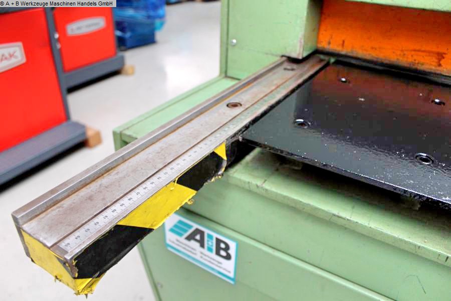 sheet width: 1040 mmplate thickness: 2.50 mmthickness at Niro-steel: 1.25 mmno. of strokes: max. 90 Hub/mincutting angle: 2.70 Graddistance between columns: 1060 mmwork height max.: 940 mmback stop - adjustable: max. 550 mmcolumn arm: 120 mmvoltage: 400 Vengine output: 4.0 kWweight of the machine ca.: 820 kg.range L-W-H: 1650 x 1200 x 1250 mmEquipment:- robust / motorized crank guillotine shears with motor drive- break-proof, torsion-free steel welded construction- compact and clear machine design- manual back stop, with analog position display adjustable from behind continuous adjustment over the entire travel range travel range max. 550 mm- 1x hold-down bar- 1x side stop- 1x front support arm- original operating instructionsThe data for this ad was created with ModulMWS - the software solution of LogoTech oHG.