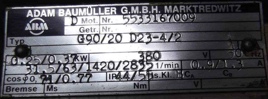 Tipo de máquina: Gear motor 0.25/0.37 kW 31.5/63 rpm