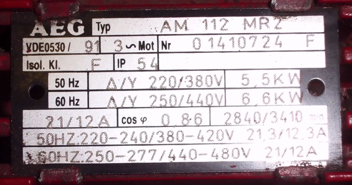 Tipo de máquina: Electric motor 5.5 kW 2840 rpm