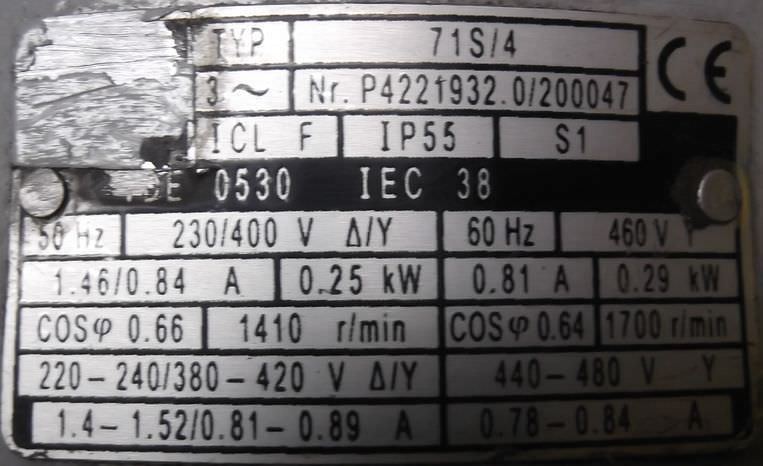Tipo de máquina: Geared motor 0.25 kW 151 rpm