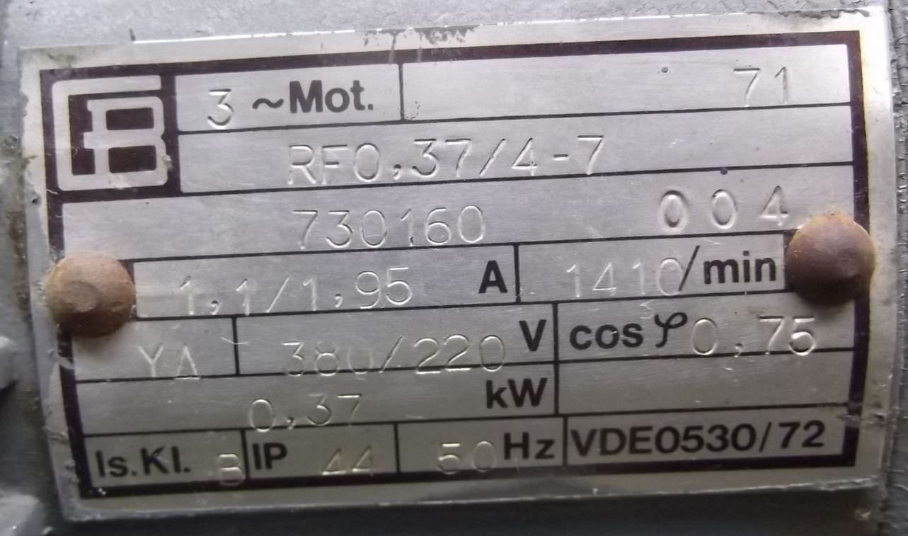 Tipo de máquina: Gear motor 0.37 kW 141 rpm