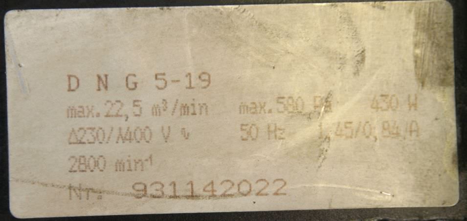 Tipo de máquina: Pressure fan 22.5 m³/min