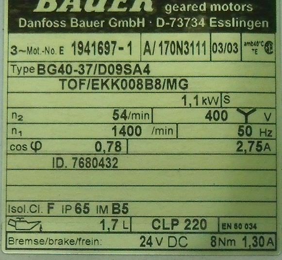 Tipo de máquina: Geared motor 1.1 kW 54 rpm