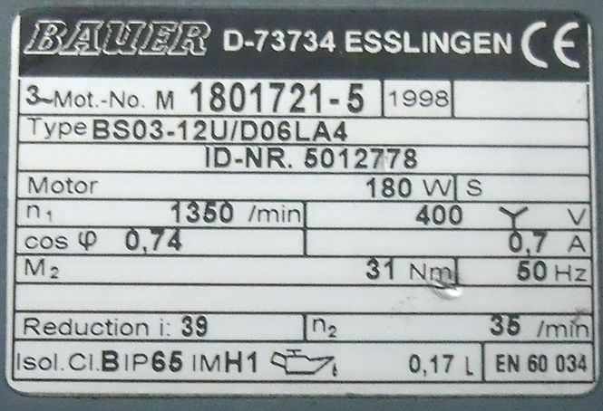 | BAUER | BS03-37V/D08SA4-TOF-ST-K | 250 EUR |