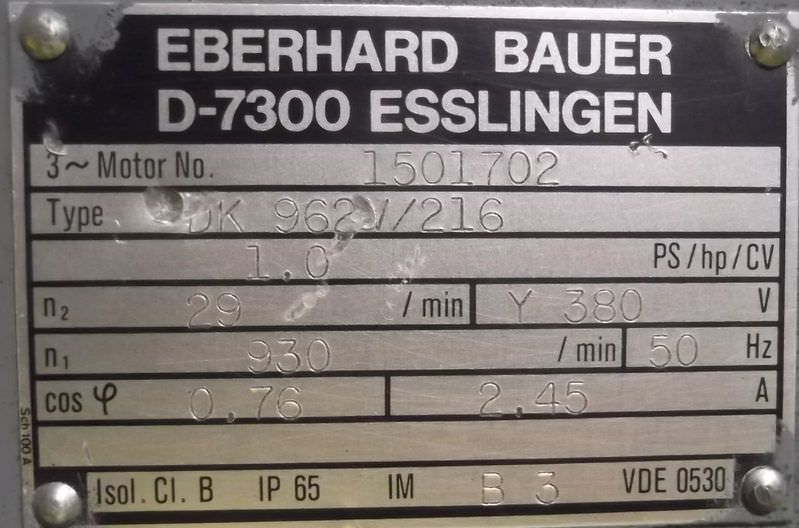 Tipo de máquina: Gear motor 0.75 kW 29 rpm