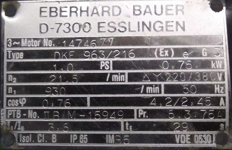 Tipo de máquina: Gear motor 0.75 kW 21.5 rpm