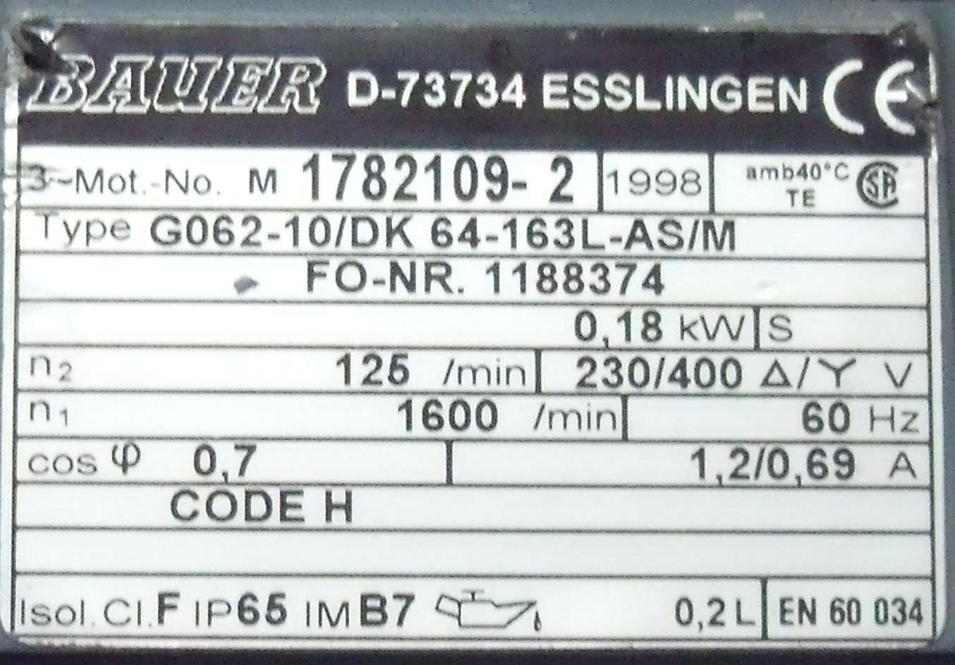| BAUER | G062-20/DK64-163L | 250 EUR |