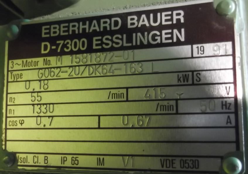 Tipo de máquina: Gear motor 0.18 kW 55 rpm
