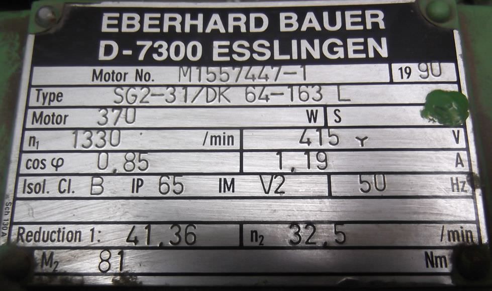 Tipo de máquina: Gear motor 0.37 kW 32.5 rpm
