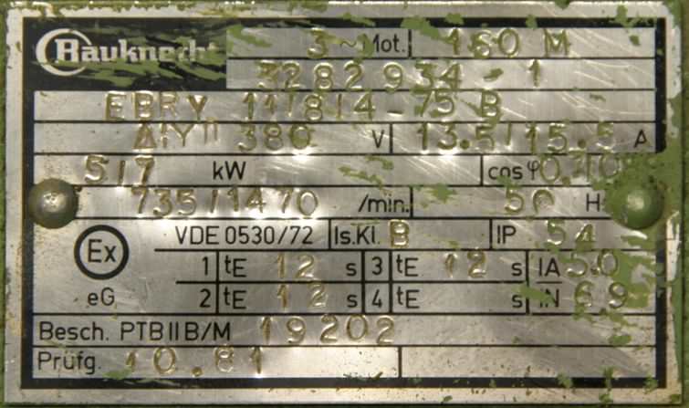 Tipo de máquina: Electric motor 5/7 kW 735/1470 Rpm