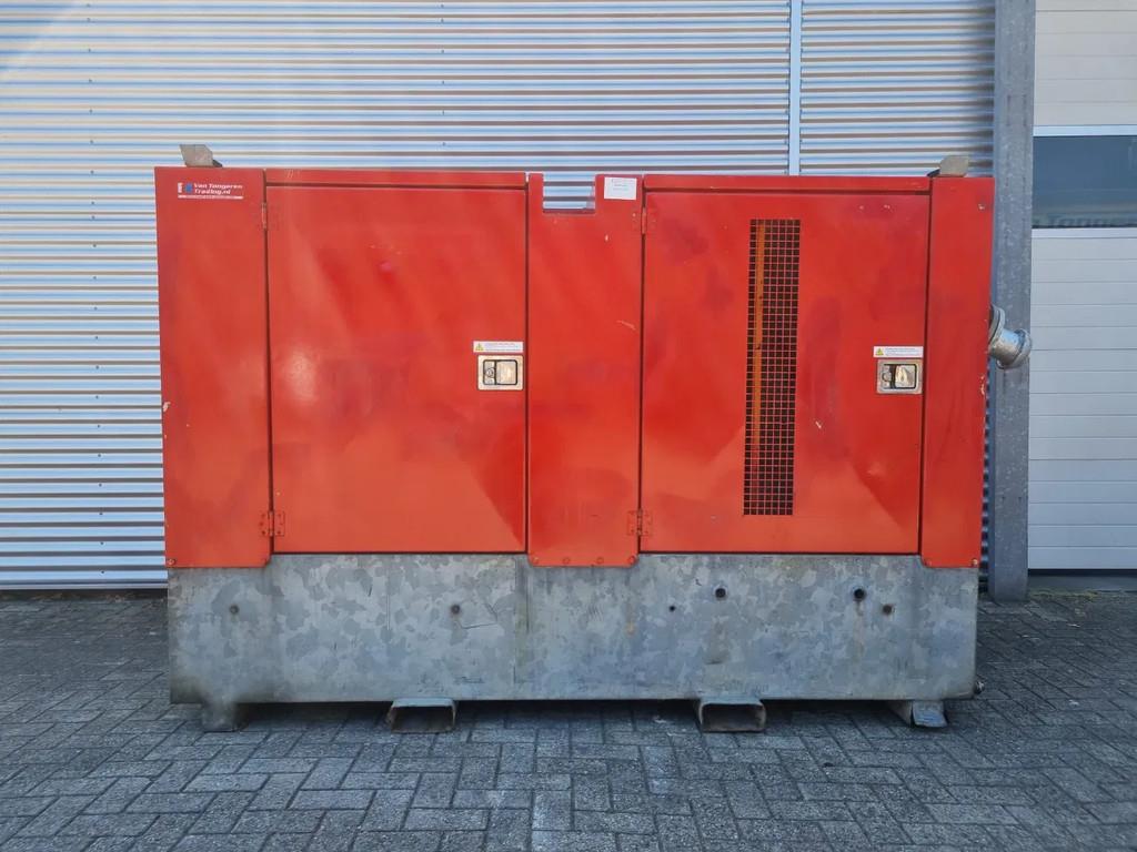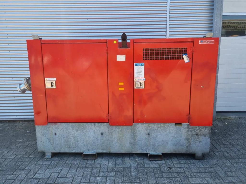 Dry-priming high-pressure pump with a diesel engine and a discharge pressure of 14 bar. Thanks to its 55 kW motor power, this high-pressure pump achieves a capacity of 145 m³ per hour. The pump is equipped with a bronze impeller. This makes it an excellent choice as a booster pump, irrigation pump, or high-pressure pump for pressure testing storage tanks during tank testing. The pump, with its diesel engine and vacuum system, is mounted in a sound-dampened enclosure. This limits noise pollution to the surrounding area., The diesel high-pressure pump is often used in industry as a booster pump or pressure pump for tank testing and cooling water applications. As a booster pump, the high-pressure pump is installed behind a larger pump to pump the output with more pressure. This provides greater pressure, for example, to cover longer distances. Specifications, , Discharge Connection () • ...