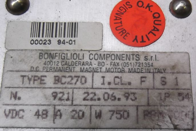 Tipo de máquina: Geared motor 0.75 kW 24 rpm 48 Volt