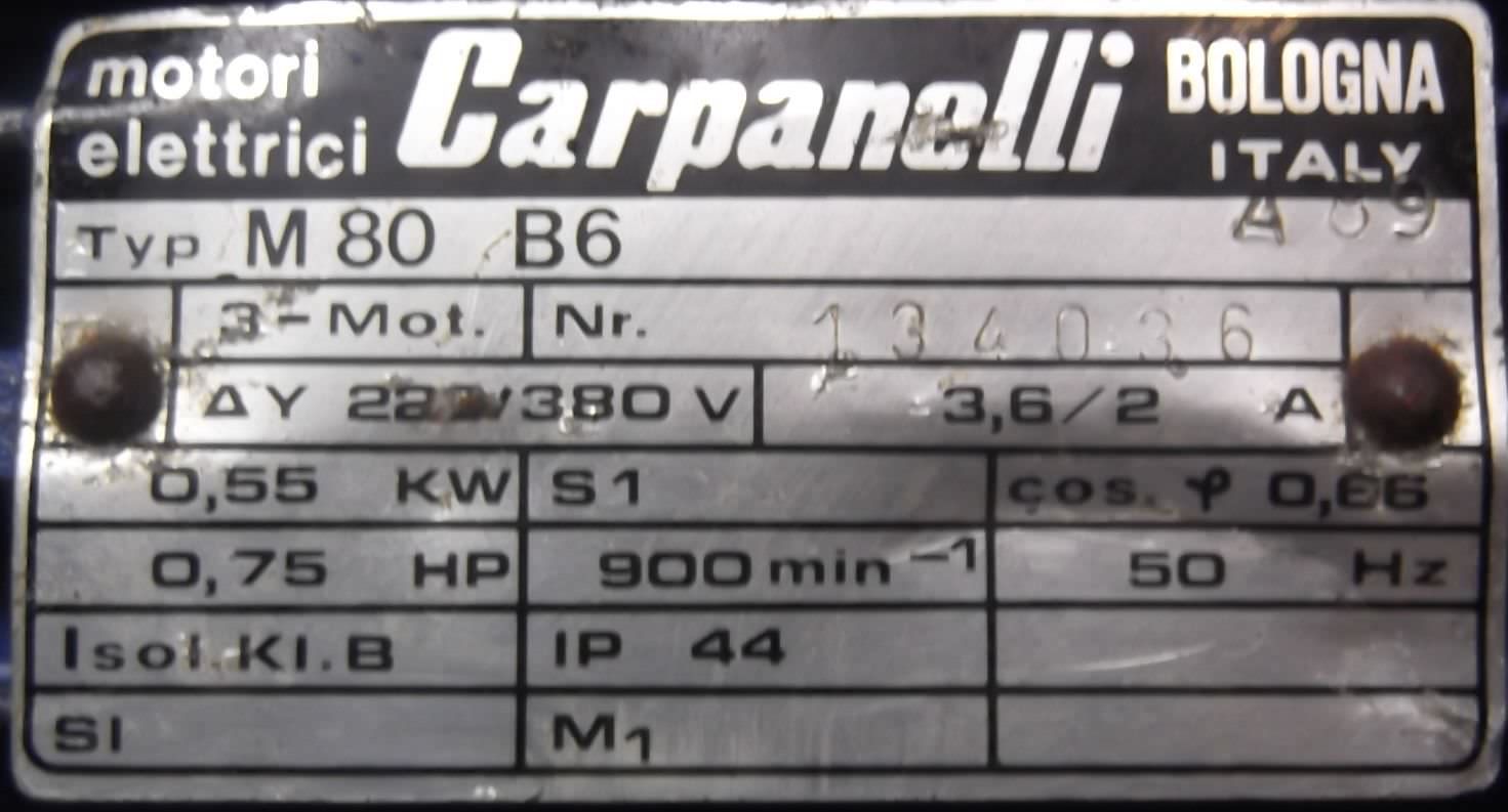 Tipo de máquina: Gear motor 0.55 kW 3.7 rpm