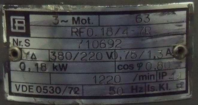 Tipo de máquina: Electric motor 0.18 kW 1220 Rpm