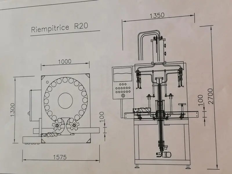 filling machine up to 4500 Lt/h comprises a filler with 20 taps, each
