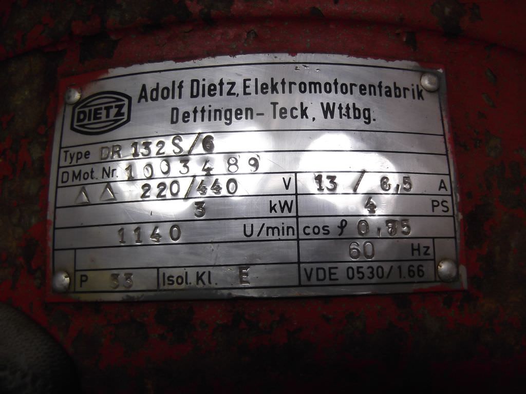 Tipo de máquina: Electric motor 3 kW 950 rpm