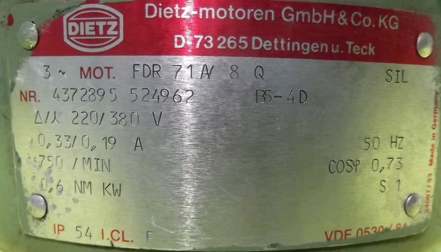 Tipo de máquina: Gear motor 0.6 kW 30 rpm
