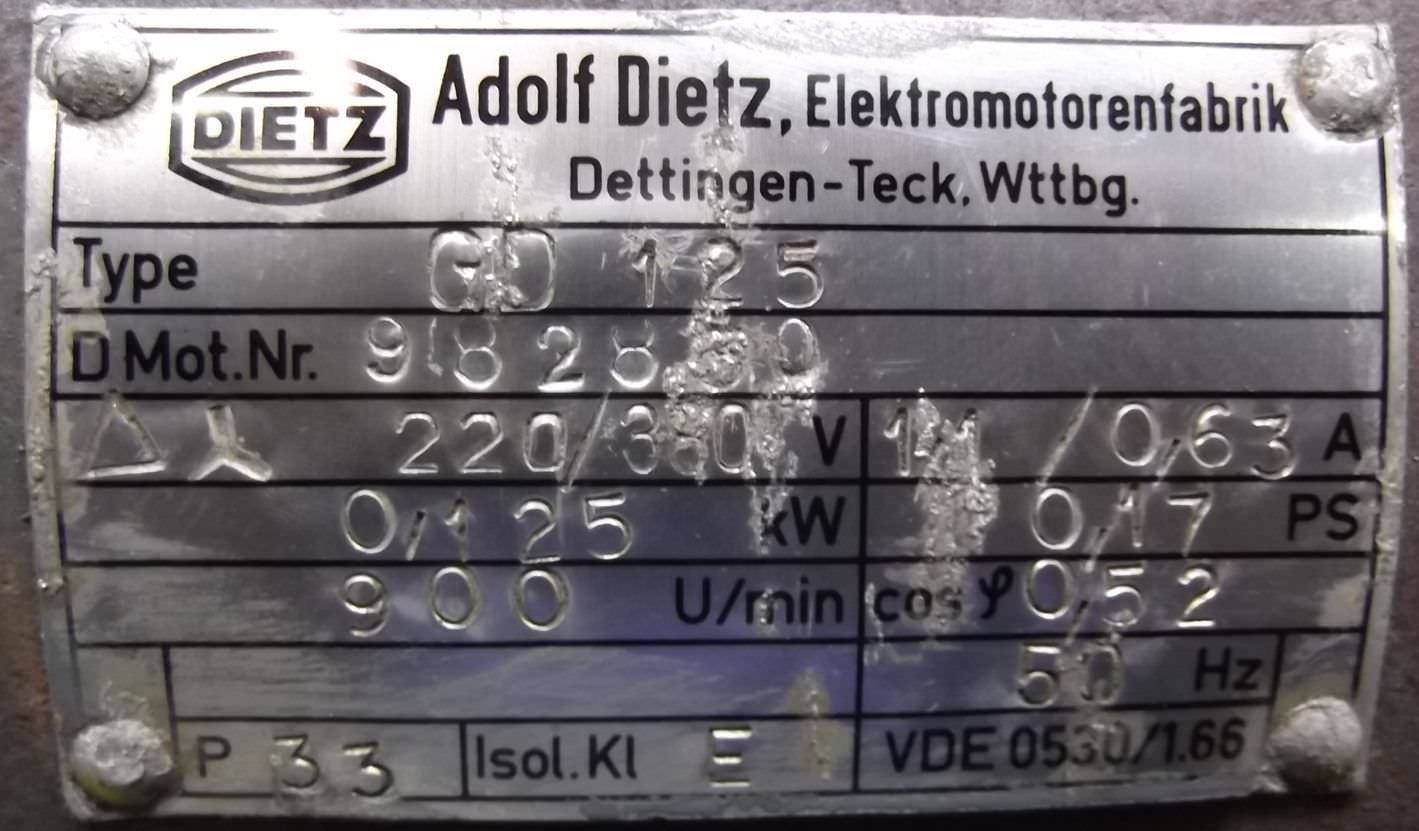 Electric motor 0.125 kW 900 Rpm DIETZ GD 125