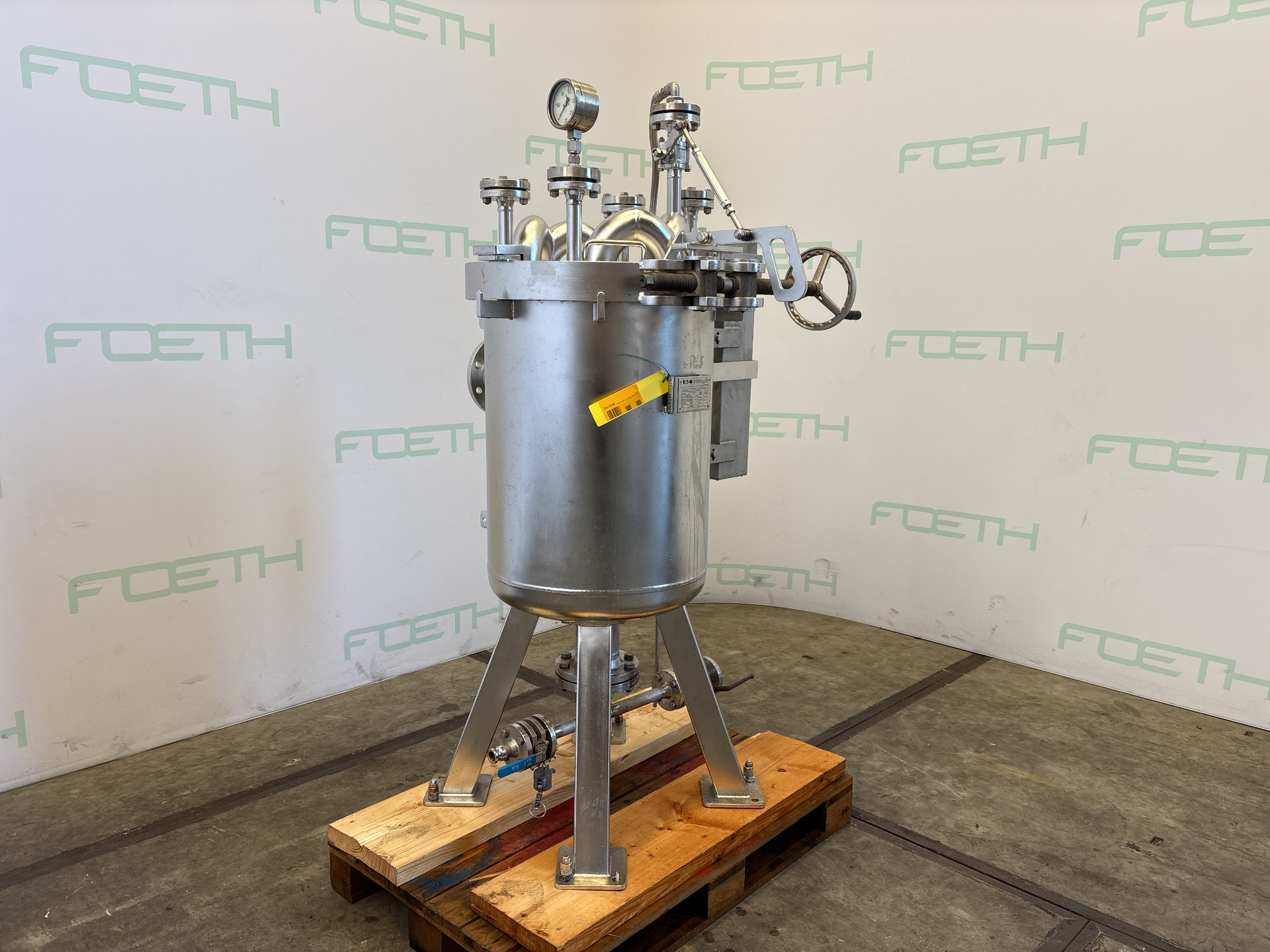General SKU397X1153 MakeEaton LocationBarneveld CEcheck TypeVMDE-0402-AC10-100DX-22SEN-M Pressure Working pressure10 Bar Vacuum possiblecheck Main Features MaterialStainless steel Volume85 Ltr. Surface0.16 m2 Specified Features - Candle filter Candle filtercheck Filter surface± 0,4 m² (1,6 m ²) Number of candles4 Candle sizesø 200 x 659 Cake capacity185 l. Liquid outletDN100 Max. temperature— 10 / 160 °C Top connectionsDN100 Vessel sizesø 550 x 800 mm MaterialStainless steel 1.4571 (316Ti) Candle filters Capacity185 l. Max. temperature-10°C/+160°C Number of bags4 Information No.V1586.3 Year of construction2017 Mounted on legscheck Weight220 kgCandle filtersEatonFilters > Candle filtersBrand > Eaton What you can expect from Foeth: -- Machine is in working condition -- At a reduced price compared to new -- Ready for shipping to any destination worldwide -- You are welcome to inspect the machine in Barneveld, The Netherlands. Please visit us in Barneveld for many more machines!