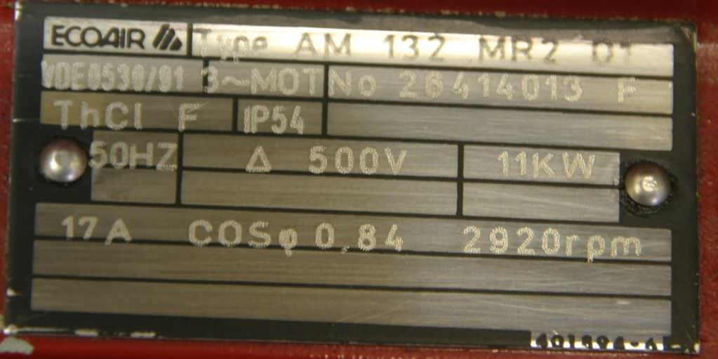 Tipo de máquina: Electric motor 11 kW 2920 Rpm