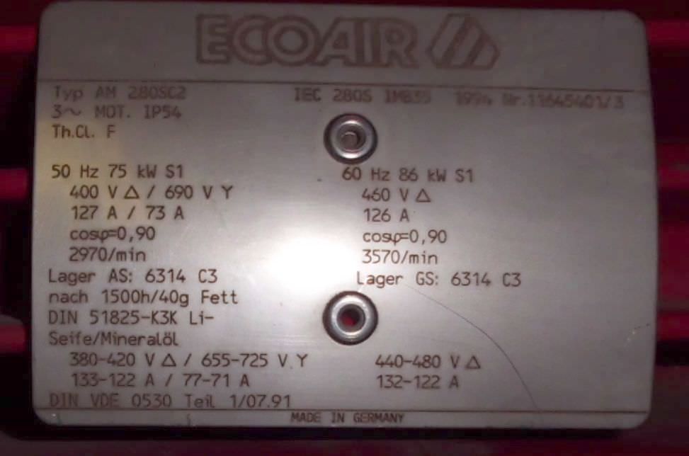 Tipo de máquina: Electric motor 75 kW 2970 rpm