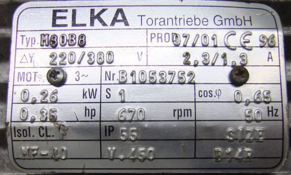 Tipo de máquina: Geared motor 0.25 kW 670 rpm