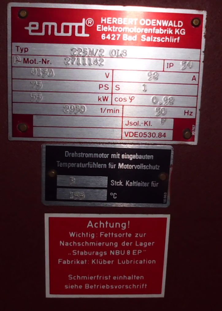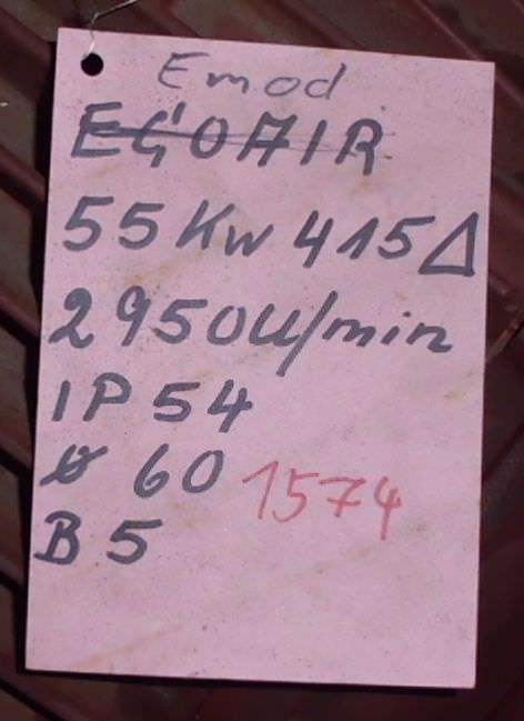 Tipo de máquina: Electric motor 55 kW 2950 Rpm