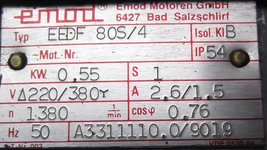 Tipo de máquina: Geared motor 0.55 kW 66 rpm