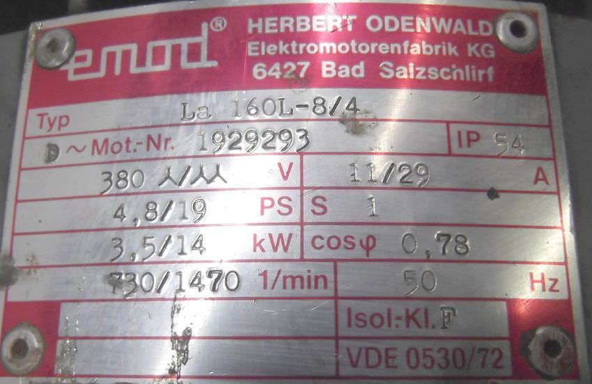 Tipo de máquina: Electric motor 3.5/14 kW 730/1470 Rpm