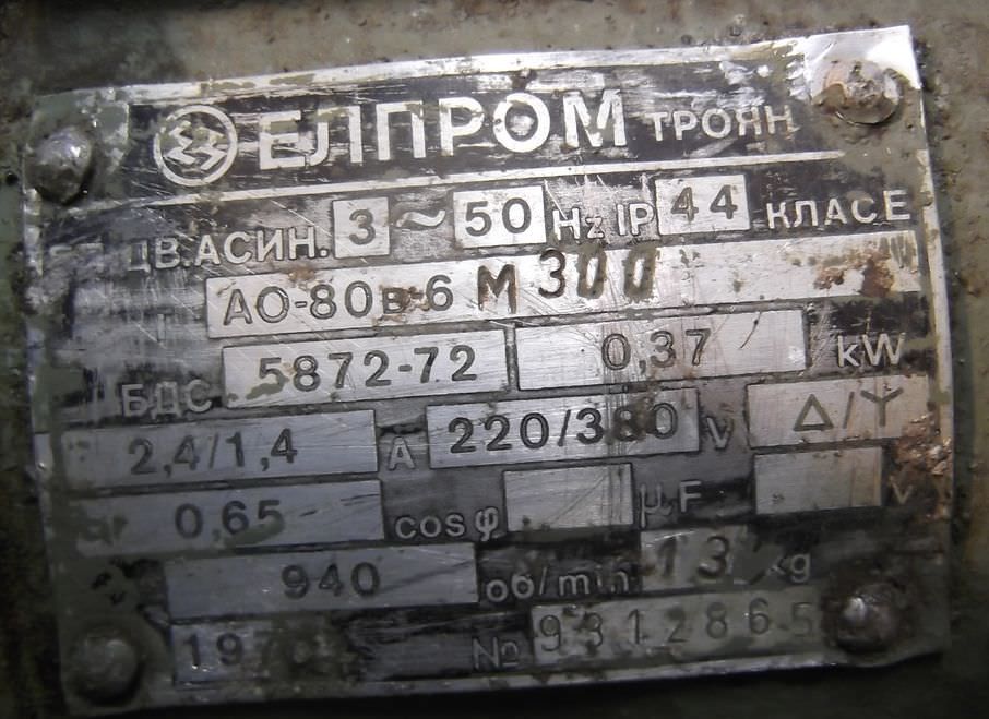 Tipo de máquina: Electric motor 0.37 kW 940 Rpm