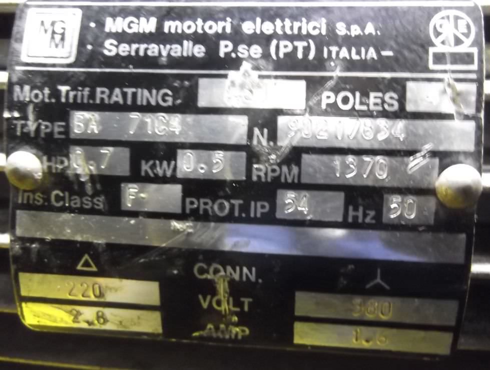 Tipo de máquina: adjustable gear motor 0.55 kW 64-218 rpm