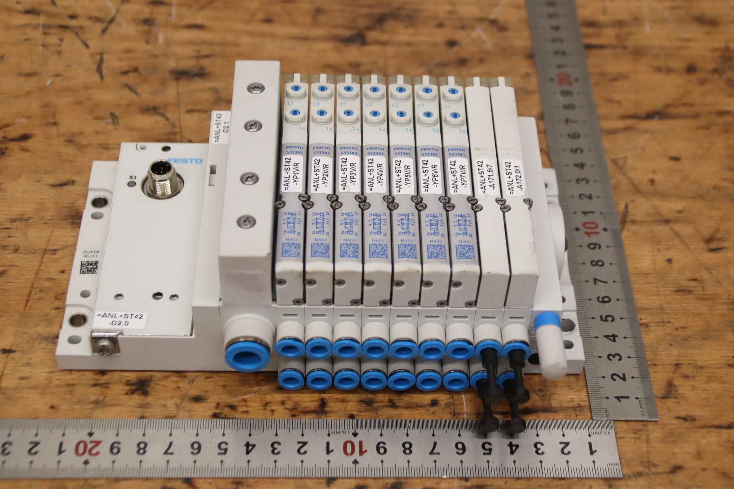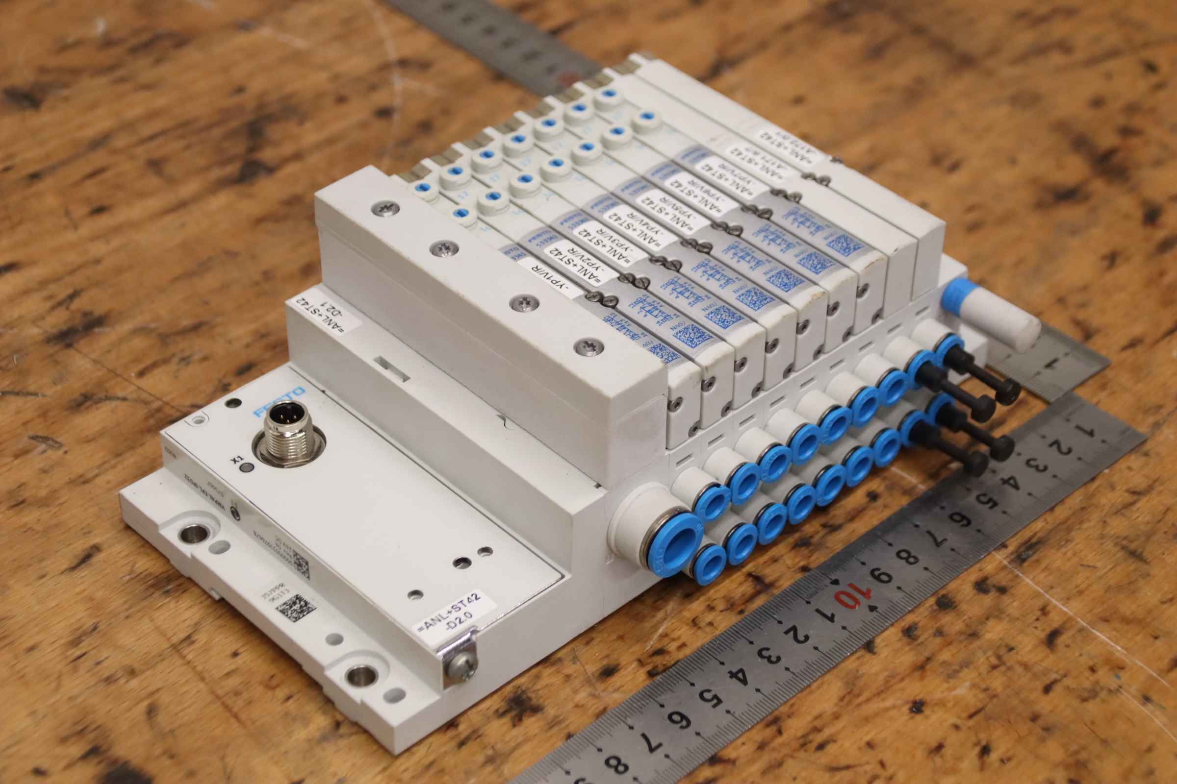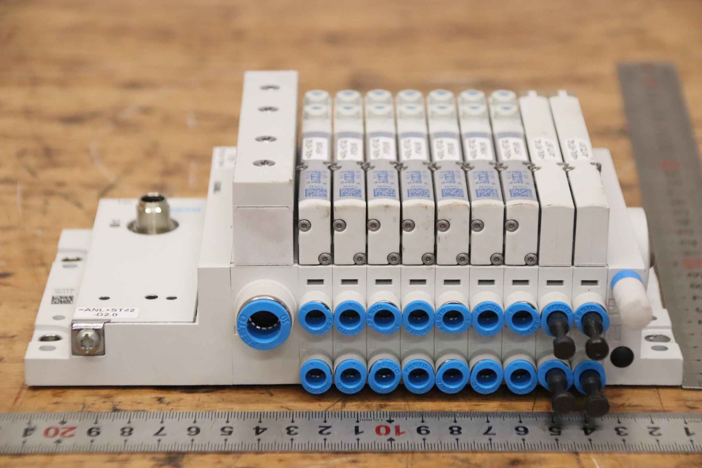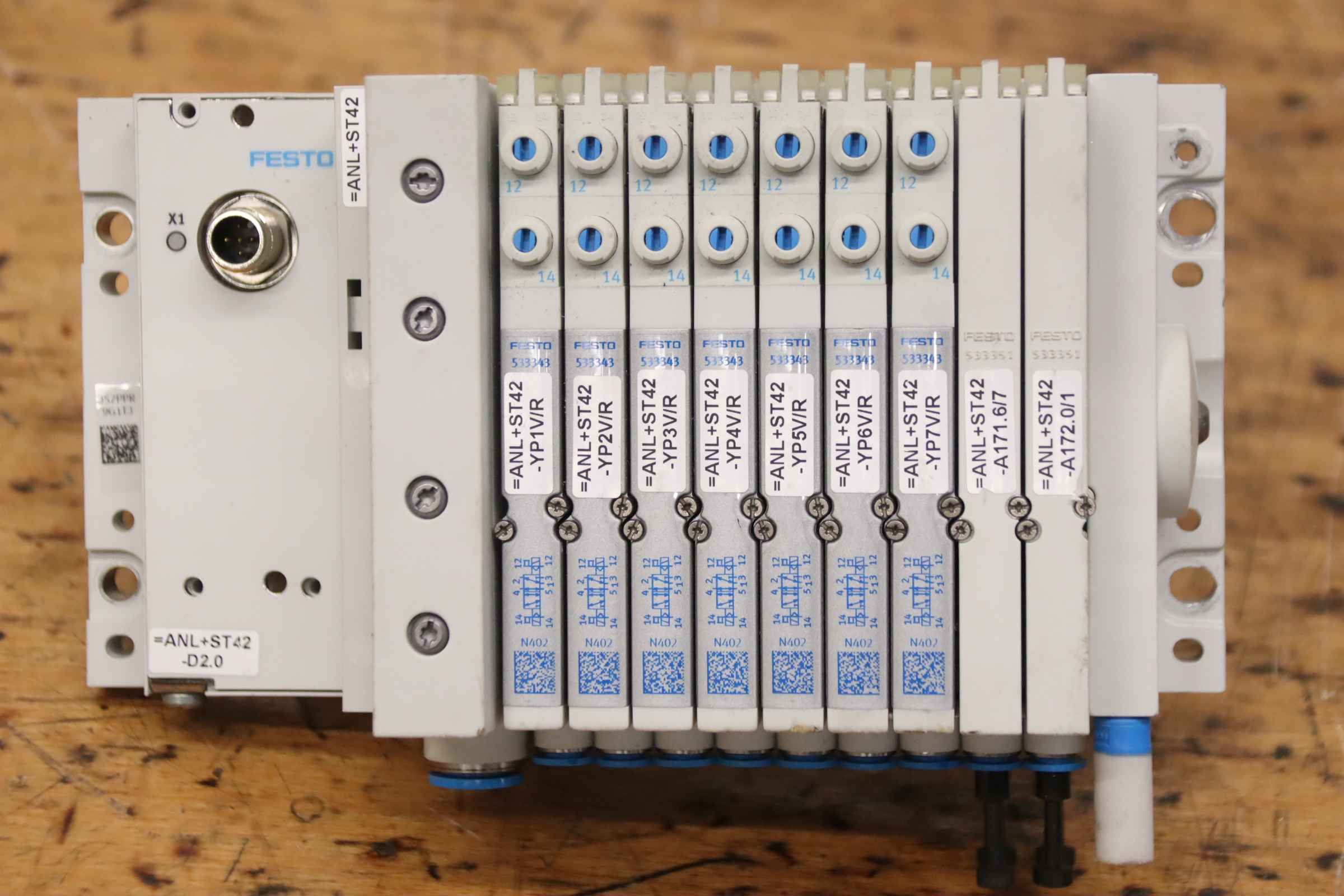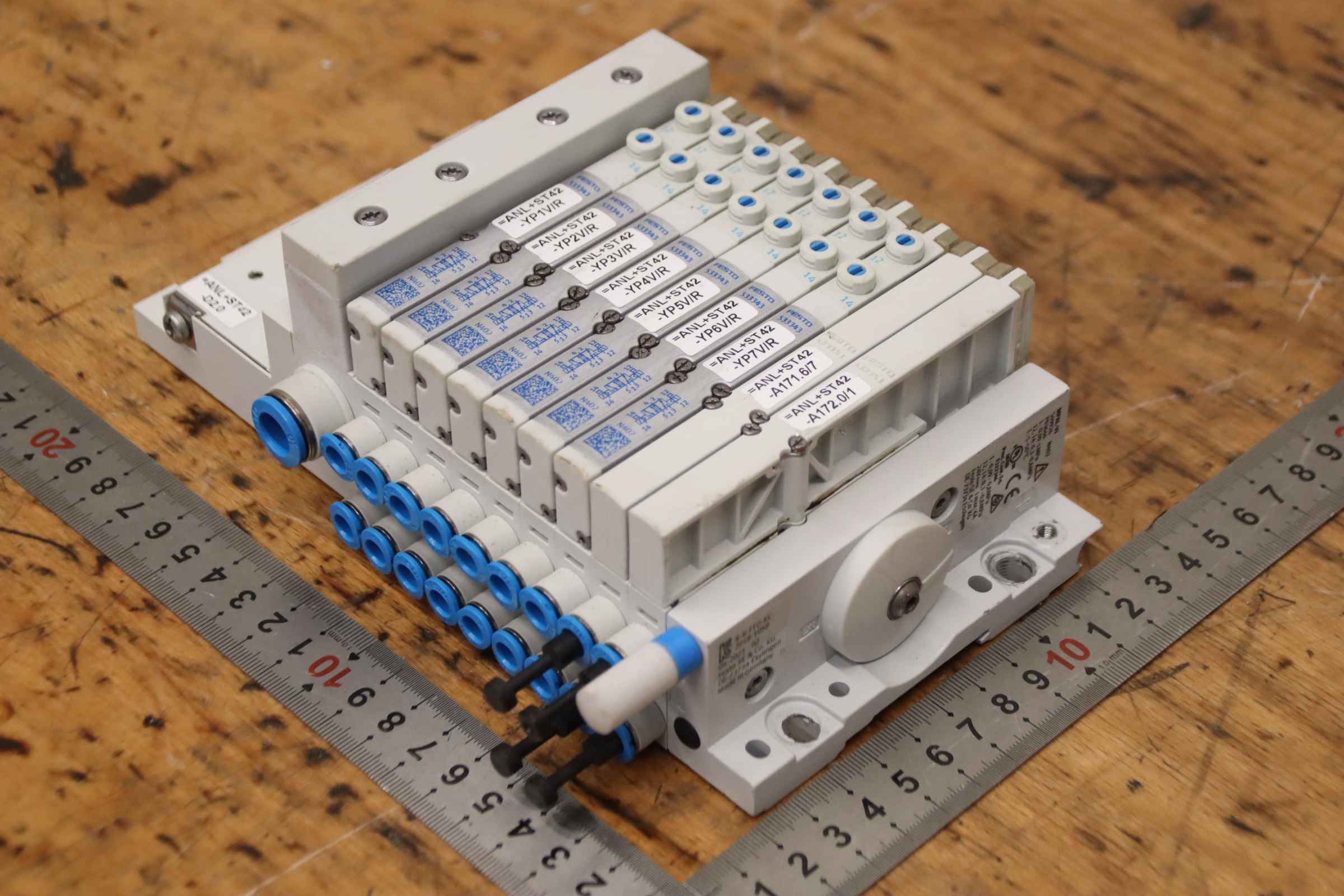 Valve manifolds, multipole connection, directional control valve, solenoid valve, pneumatic valve, air valve, pressure valve -Manufacturer: Festo, Valve manifold type MPAL-VI 569926 -End plate: VMPAL-EPL-IPO32 -Solenoid valves: Type 533343 / 533351 9 pieces -Pressure regulating valve: -Individual ...