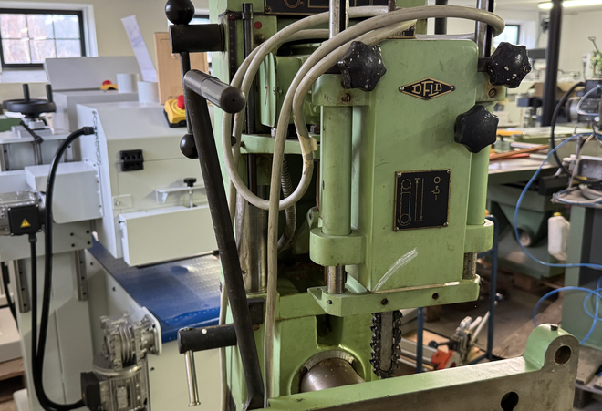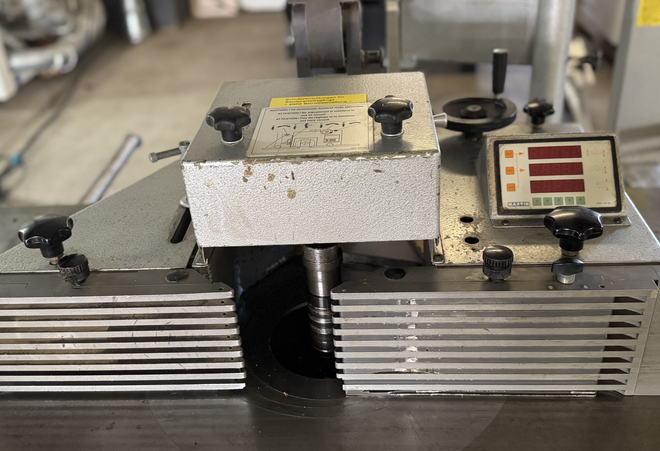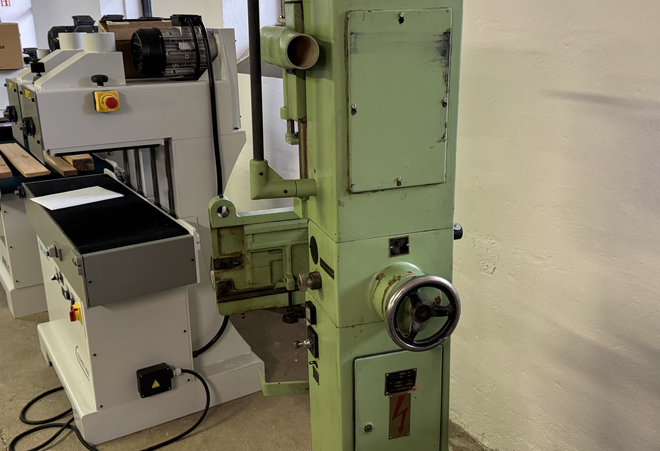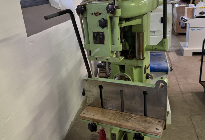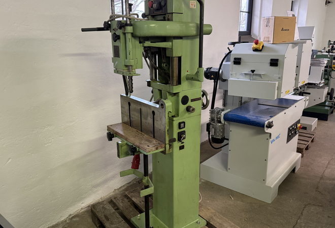 Excelente estado - Totalmente operacional - Carregamento / Transporte possível! Potência do motor: 5 / 6 kW Velocidades de rotação: 3/4/5/ 6/ 8/ 10.000 rpm Curso do fuso: 150 mm A máquina tem os seguintes acessórios opcionais Ecrã digital no controlador da posição da mandíbula do guia de alimentação Posicionamento motorizado da vedação através do sistema eletrónico da máquina Abertura motorizada da mesa para ferramentas com diâmetros de 70 mm até 250 mm Suporte de alimentação motorizada Extensão da mesa (2400mm) com suporte extensível para peça de trabalho 3000 mm, 700 mm extensível até à frente Mandíbulas de guia integradas Suporte oscilante para vedação. A vedação será levantada por roda de mão da mesa Alimentador Wegoma Variomatic 4N, 4 rolos - velocidade de alimentação 0,5 - 24 m/min