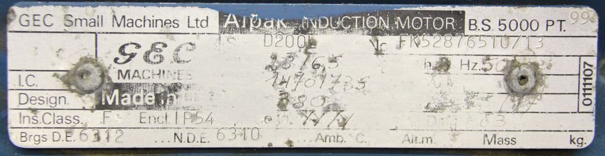 Tipo de máquina: Electric motor 28/6.5 kW 1470/735 Rpm