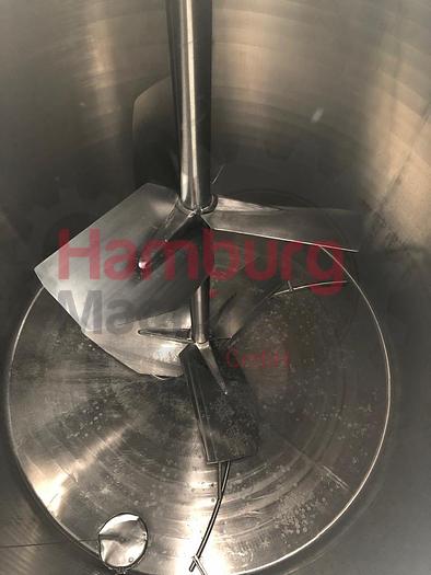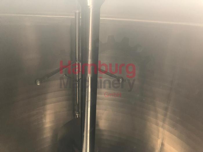 Double jacketed, isolated, process tank, previously used in a dairy factory as cream tank. Pressure in the jacket 3,5 bar. Pressure in the tank: ATM. Central placed propellor agitator with 2x big blades (diameter 1.280 - 1.600 mm) for gentle treatment of the product (cream). Motor agitator: 2,6/4,4 ...