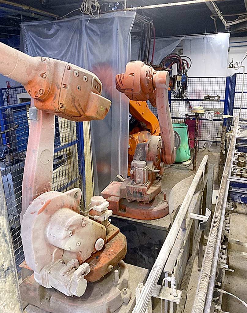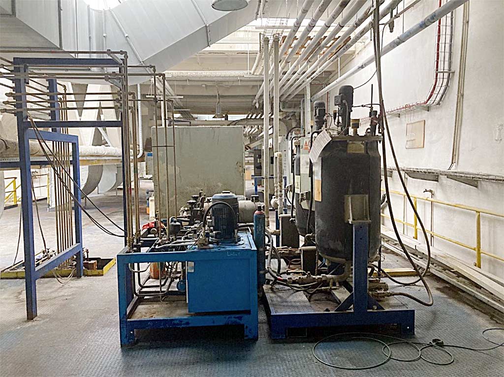 A Hennecke HK135 high-pressure polyurethane foaming system with four 25000l mixing tanks, a casting robot and two release agent robots is available. Capacity: 225t/24h, tool carriers: 42, mixing positions for additive mixing: 10, mixhead type: MQ, max. working pressure: 180bar, pressure tank: 330bar. Foam types: Rigid foam, rigid integral foam, semi-rigid integral foam, semi-rigid filling foam, cold-curing flexible foam, hot-curing flexible foam. Multiple mold foaming is possible. Complete documentation available. On-site inspection is possible.