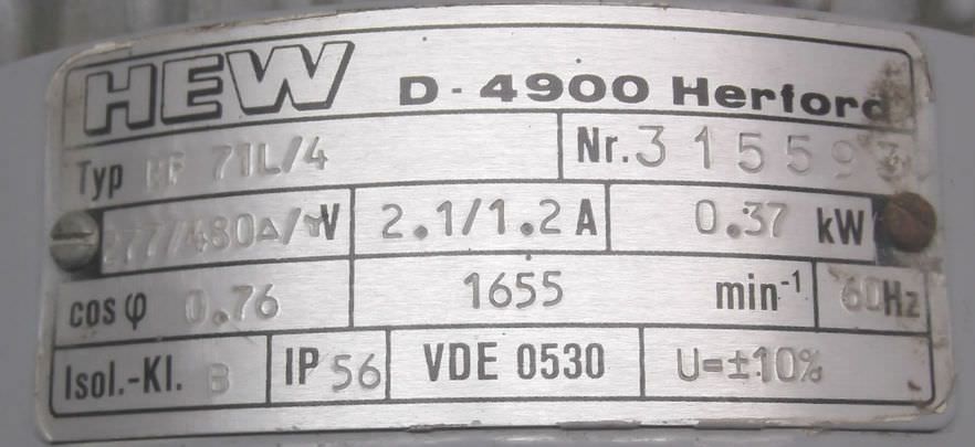 Tipo de máquina: adjustable gear motor 0.37 kW 300-2000 rpm